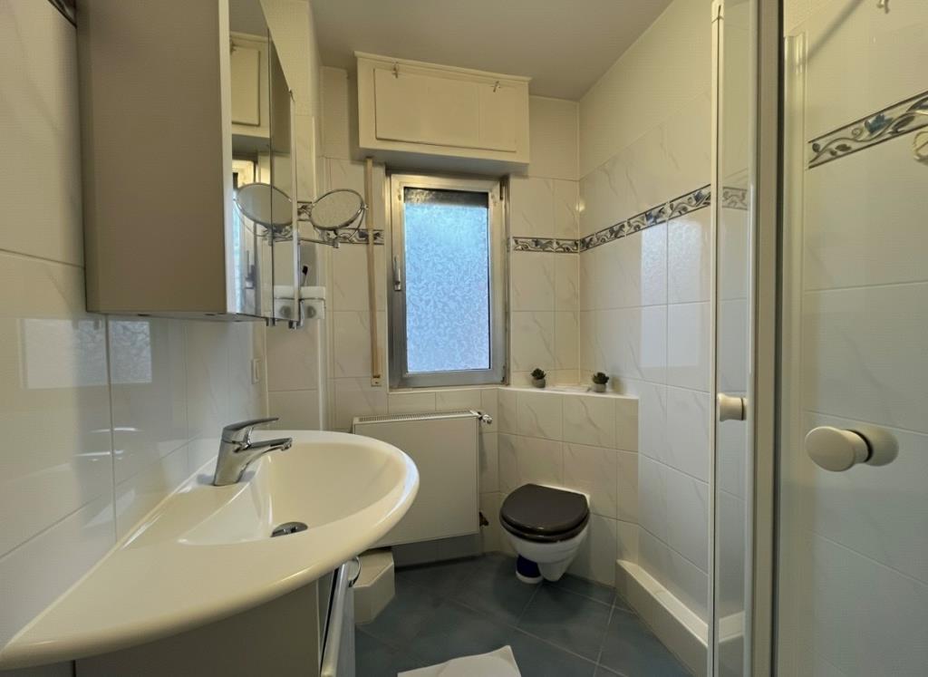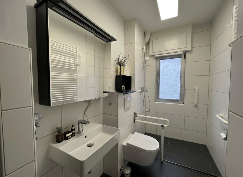 Erdgeschoss (EG): Modern saniert in 2021 und ausgestattet mit einer bodentiefen Dusche.